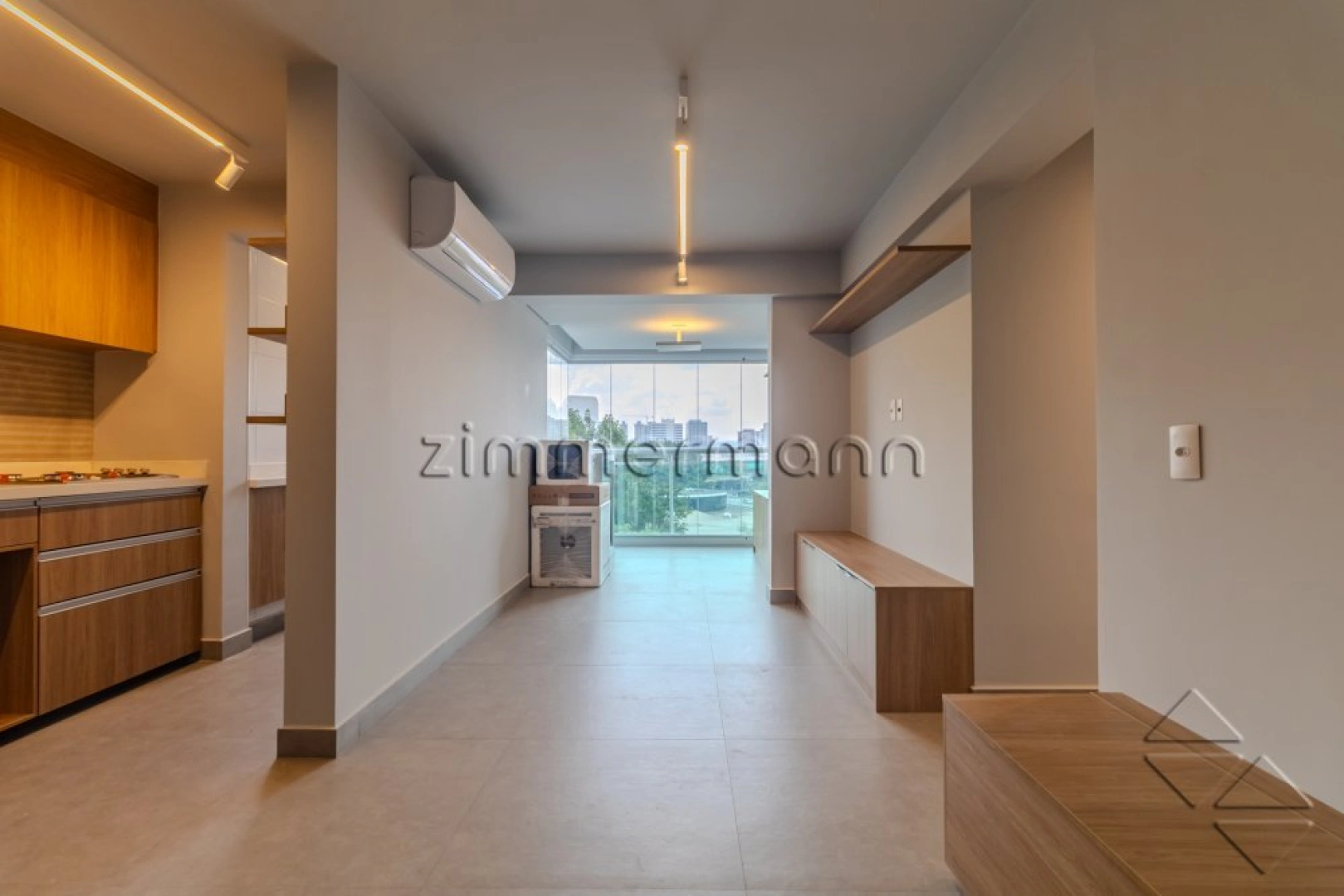 Sala com porcelanato e ar-condicionado