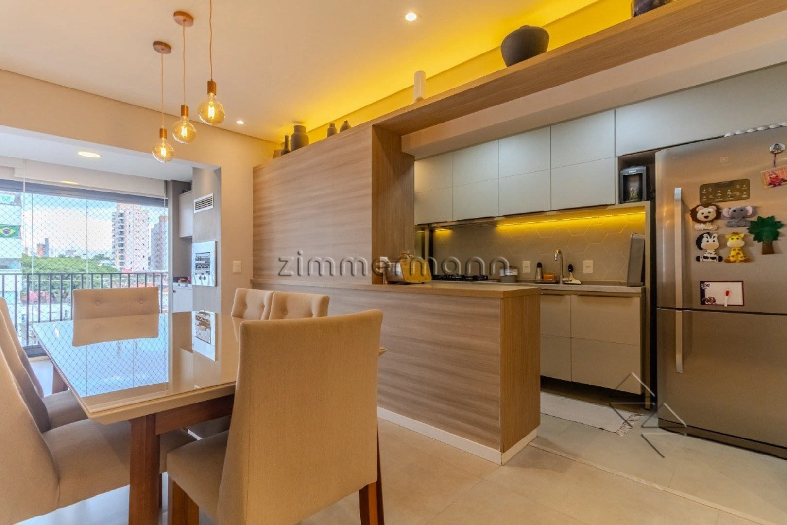 O imóvel possui living para dois ambientes, varanda integrada com churrasqueira, cozinha americana, 2 dormitórios, sendo 1 suíte e lavanderia.