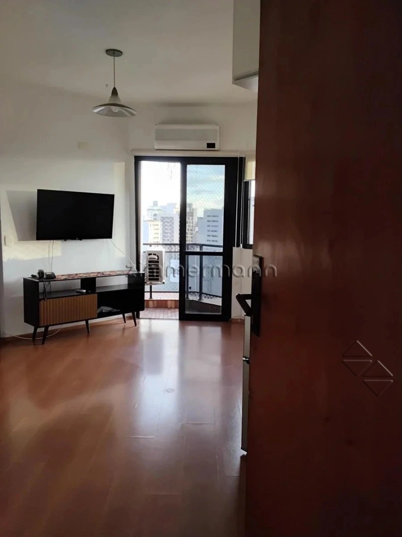 Apartamento de 1 quarto com ar-condicionado, semi mobiliado, equipado com cama, rack, estante, tv no quarto e na sala, máquina de lavar de 3 kg e frigobar duplex de 88 l. o imóvel possui vista livre, sol da manhã no quarto e sol da tarde na sala.