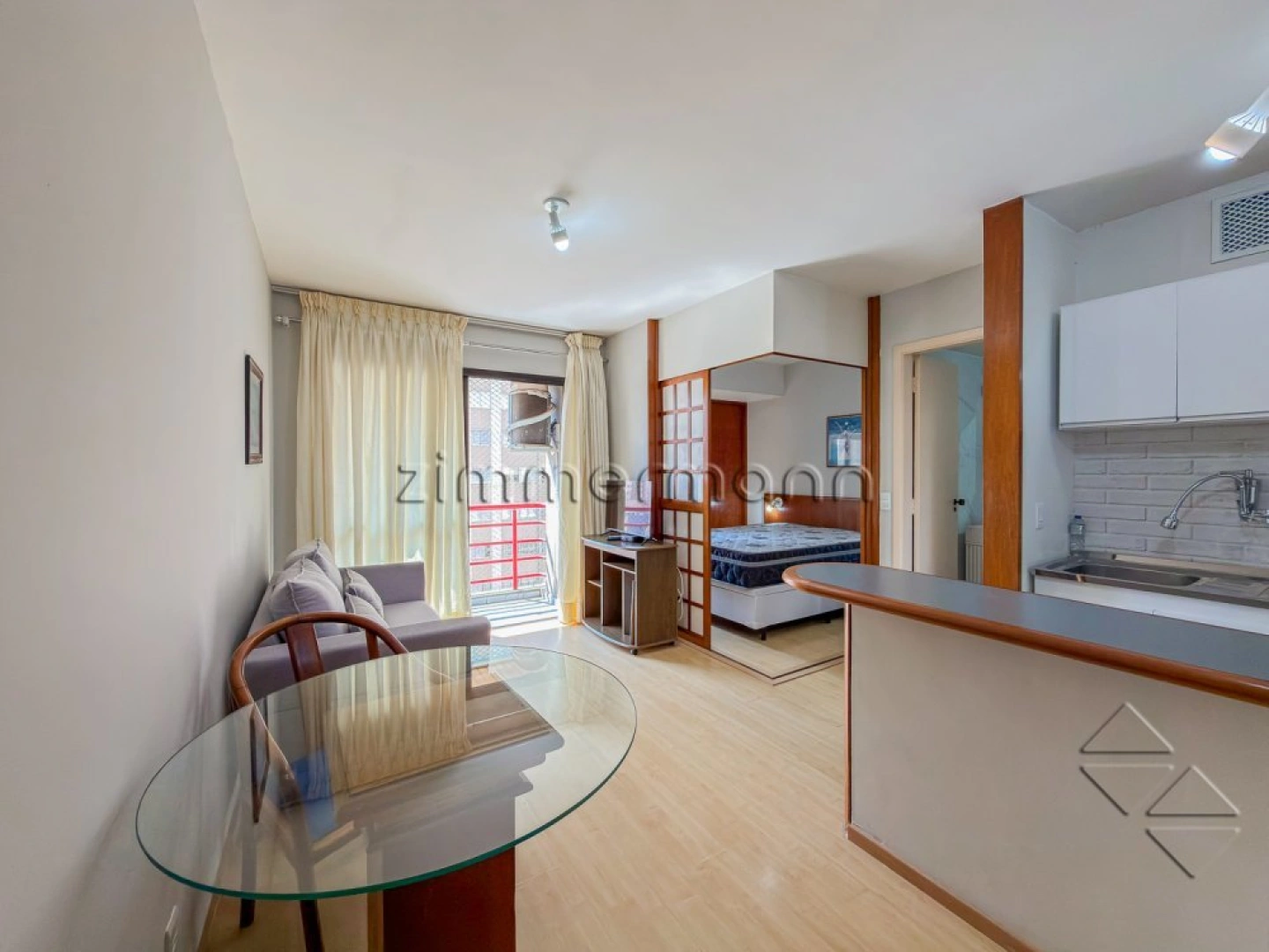 Com 35 m², o imóvel é totalmente mobiliado e possui excelente distribuição interna, com 1 dormitório, living e cozinha americana, oferecendo praticidade e conforto.