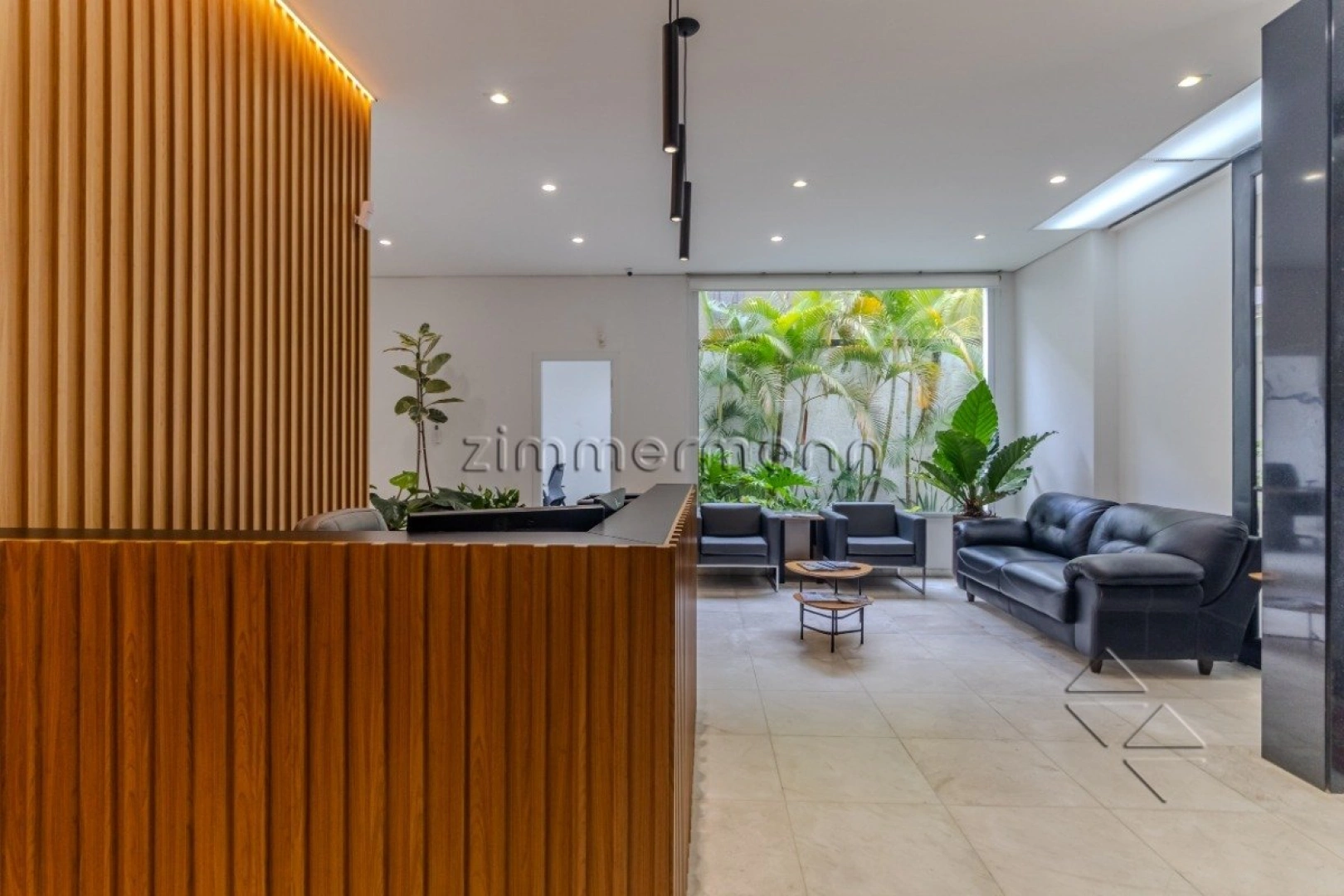 A entrada social é marcada por uma porta original dos anos 1930, em vidro e ferro fundido, com desenho vazado exclusivo, que dá acesso ao living com piso em mármore italiano, conferindo sofisticação e elegância atemporal ao ambiente. Um imponente panô de vidro do piso ao teto emoldura o jardim com espelho d'água e proporciona abundante iluminação natural, criando uma atmosfera contemporânea e acolhedora, onde interior e exterior se integram com harmonia, valorizando a arquitetura e ampliando a sensação de espaço.